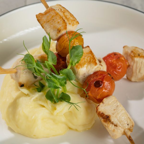 Kanafilee, kirsstomatid, kartulipüree, või, roheline.