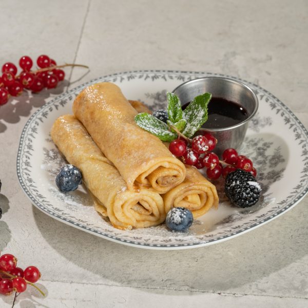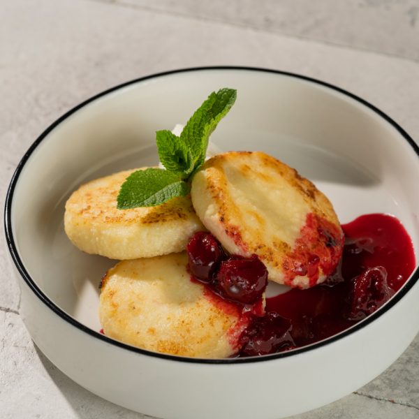 Kohupiim, muna, manna, rosinad, kirsikeedis, münt. Valikus on kaste: hapukoor, mesi, karamell, maasikasiirup, kondenspiim.