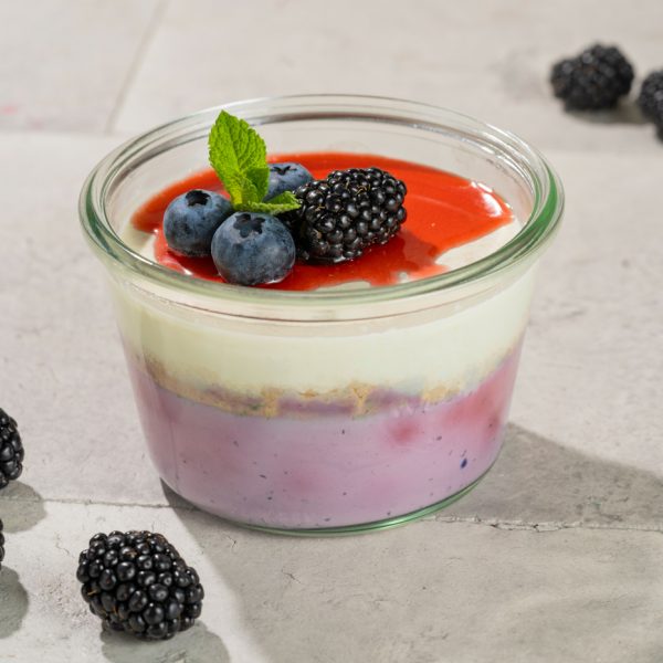 Toorjuust, koor, küpsis, või, kanamuna, tuhksuhkur, värsked marjad, münt.