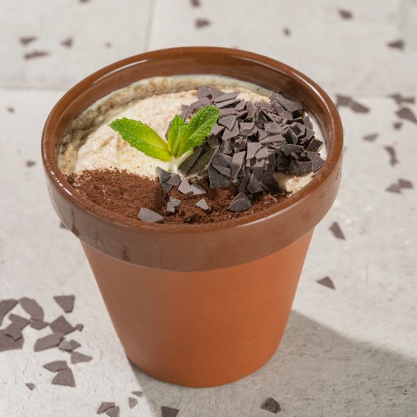 Koor, mascarpone juust, savoiardi küpsised, kohv, mandlisiirup, tuhksuhkur, šokolaad, kakao, münt.
