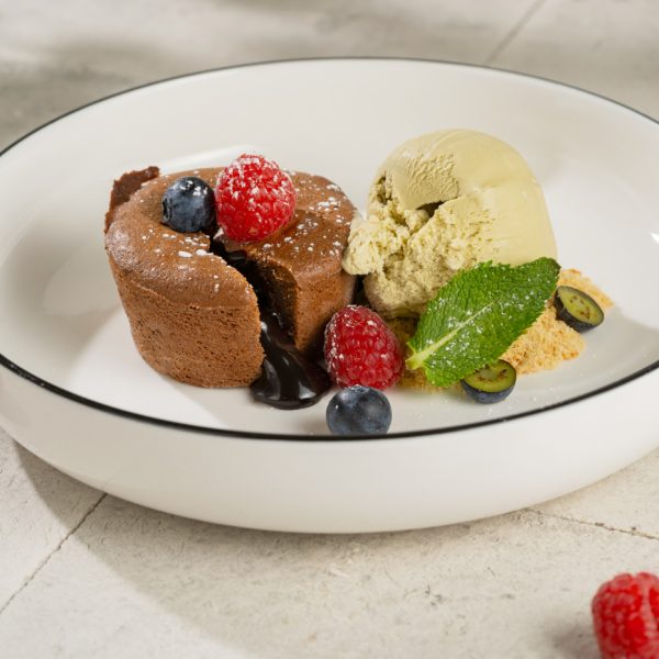 Šokolaad, kanamuna, või, suhkur, küpsis, jäätis, värsked marjad.