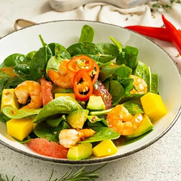 Spinat, greip, avokaado, tiigerkrevett, tšillikaste, tšillipipar.