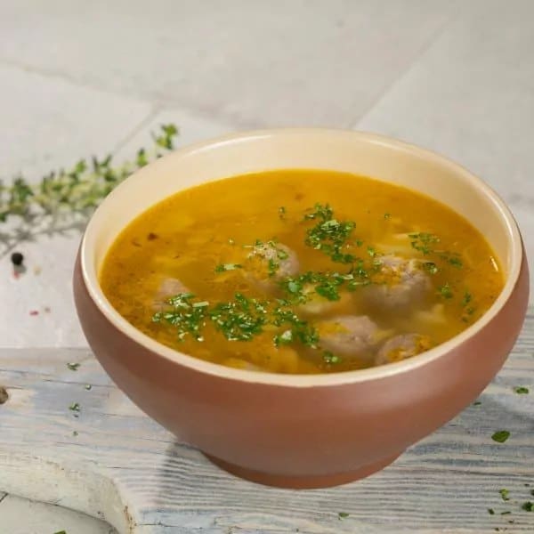Lihapallid, värvilised pastatooted, sibul, porgand, maitseroheline.