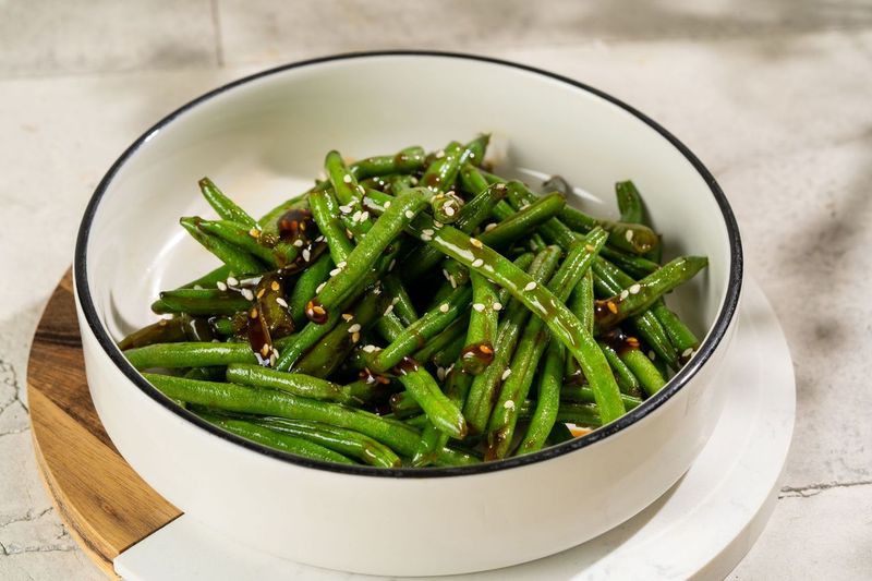 Rohelised oakaunad, teriyaki-kaste, seesamiseemned.