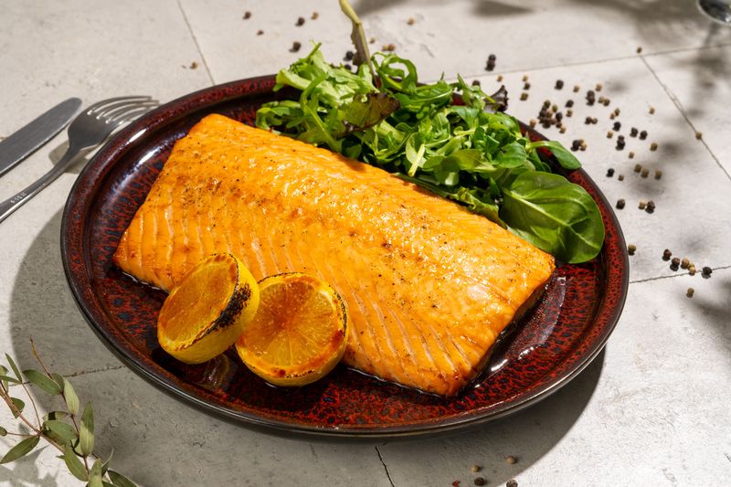 Lõhe, salati segu, sidrun.
