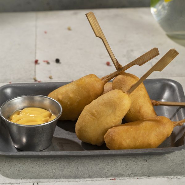 Сосиски отварные или гриль, картофель фри, кетчуп.