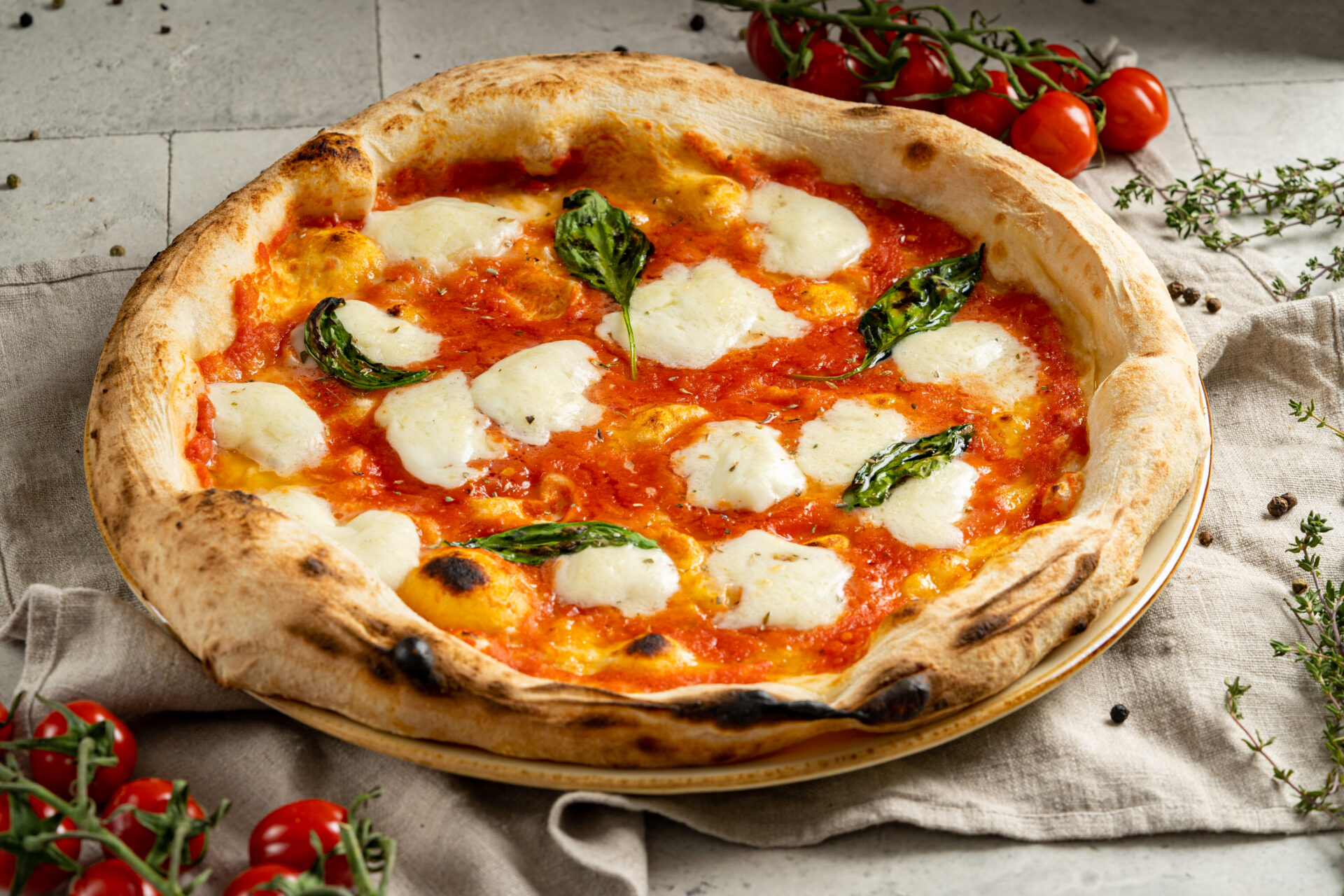 Тесто основа, соус томатный, моцарелла буффало, оливковое масло, орегано.