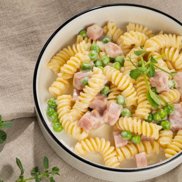 Pasta, sink, parmesani juust, rohelised herned, või, rõõsk koor, maitseroheline